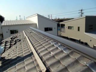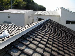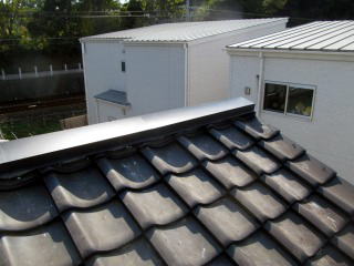 棟板金と[ルーフアロー棟金具]との組み合わせにより 棟部の耐震・軽量化を図る工法です (特許出願:取得済み)